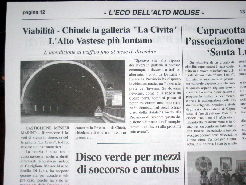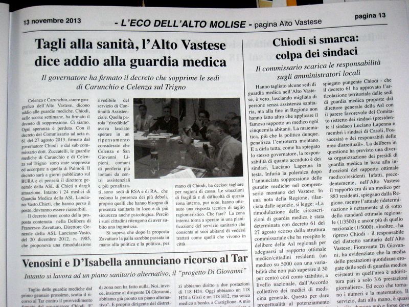 Sulle pagine dedicate all'Alto Vastese l'approfondimento sui tagli alla guardia medica e il caso della galleria "La Civita" di Castiglione Messer Marino. E ancora l'inaugurazione del museo archeologico di Schiavi di Abruzzo dedicato ai Sanniti e la storia di Giuseppe Sabatino e della ventricina made in Japan.