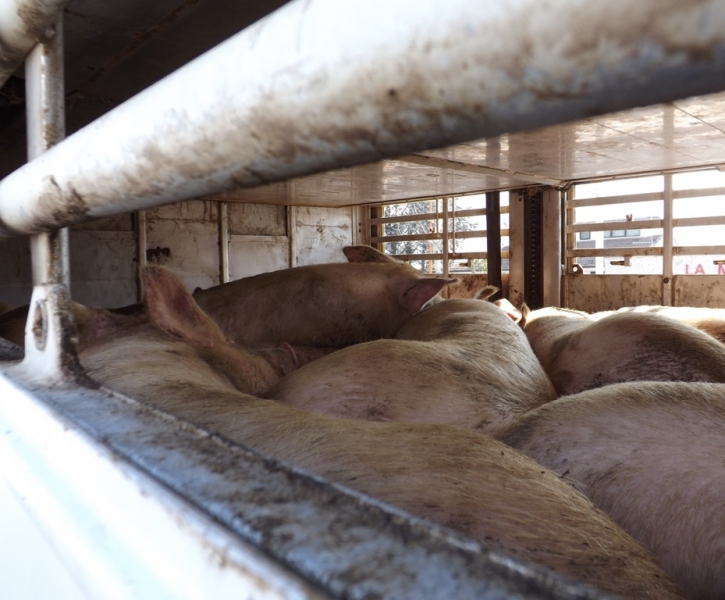 Operazione della Polizia Stradale che ha fermato un camion dove erano ammassati alcuni maiali senza acqua da bere