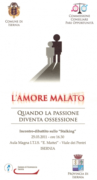 La Commissione consiliare pari opportunità del Comune di Isernia ha organizzato per domani, 25 marzo, un incontro-dibattito sullo stalking, intitolato «L’amore malato. Quando la passione diventa ossessione».