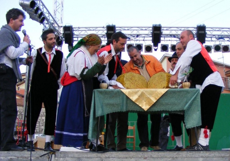 Ore 16,00: Grande sfilata di montaquilani con vestiti d'epoca e gruppo folk "Giuseppe Moffa" di Riccia (Cb) che accompagnano la Maxi frittata di 1161 Uova. Spettacolo musicale dei Bu-Fu in piazza Dante Alighieri